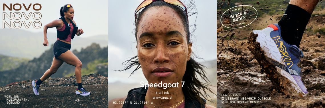 IZBIRA VELIKOSTI HOKA SPEEDGOAT 7 Tvoj zanesljiv partner za tehničen trail. Trail tekaški copat · 2026 KAJ JE NOVEGA? Speedgoat 7 — bolj odziven, bolj dodelan, še vedno pravi GOAT Nova SCF pena v vmes...